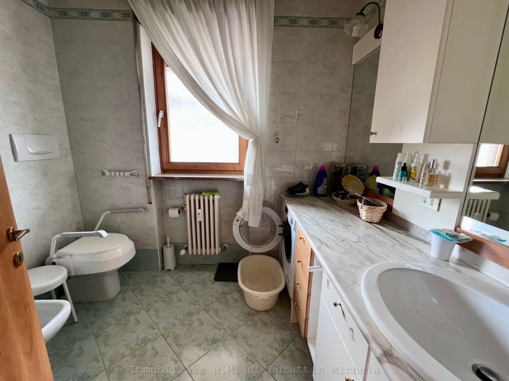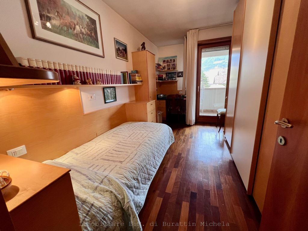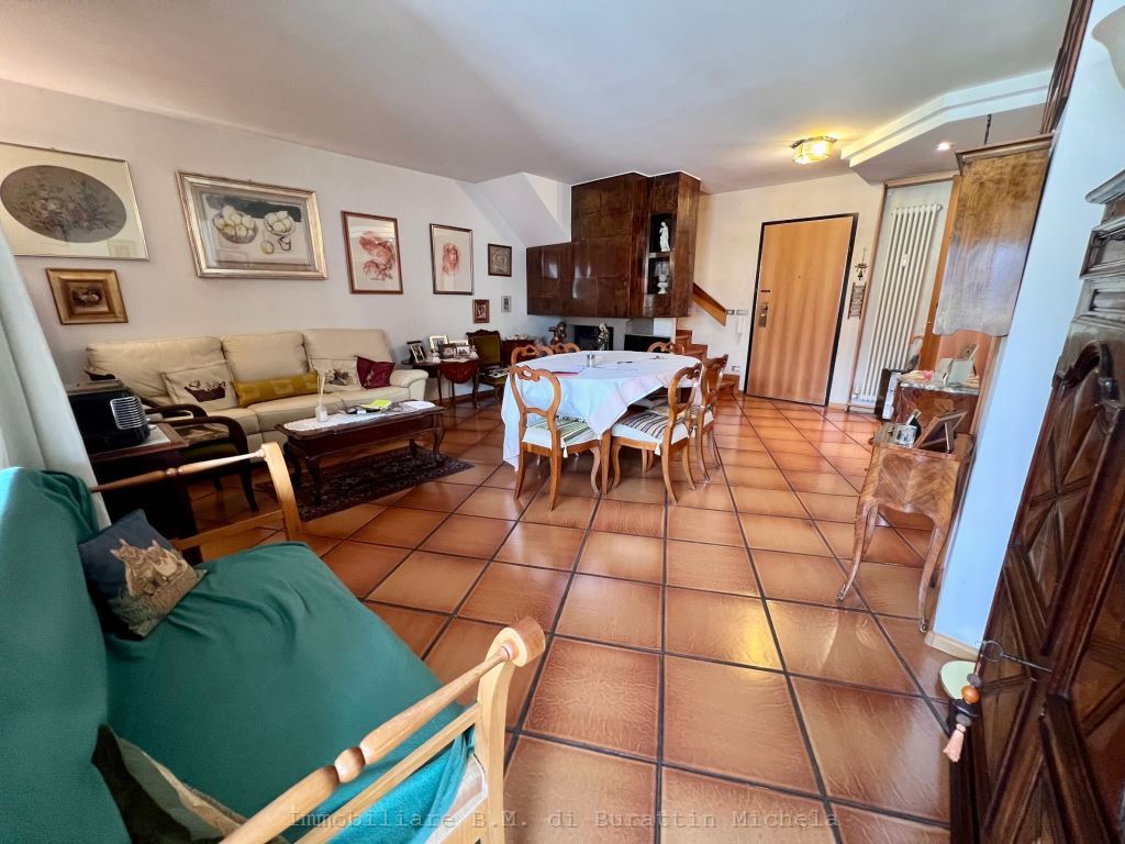 In zona poco trafficata propniamo ampio quadrilocale di 145 mq. disposto su due livelli. L'appartamento è composto da ampio soggiorno, cucina abitabile, 2 stanze da letto, balcone, al piano superiore collegato da una scala interna troviamo una veranda/stanza, bagno e ampia terrazza. Completano l appartamento una cantina e garage doppio extra al prezzo € 90.000.-