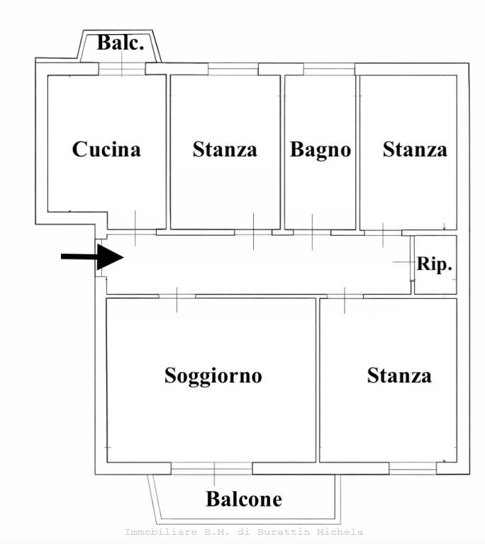 In zona interna proponiamo ampio quadrilocale di 114 mq. al piano rialzato da ristrutturare. L'appartamento è composto da ingresso, ampio soggiorno, cucina abitabile, 3 stanze da letto, bagno finestrato, ripostiglio, 2 balconi, cantina, posto auto condominiale ed eventuale garage extra al prezzo € 28.000.-