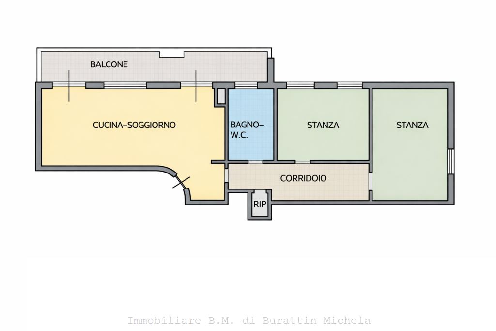Proponiamo ampio trilocale di 98 mq. composto da ampio soggiorno con zona cottura, corridoio, 2 stanze da letto, bagno finestrato, ripostiglio, ampio balcone, cantina e garage extra al prezzo €30.000.-